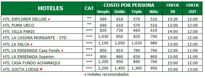 Recepción en la estación terrestre o aeropuerto de Chachapoyas y traslado a hotel seleccionado. Libre para actividades personales.